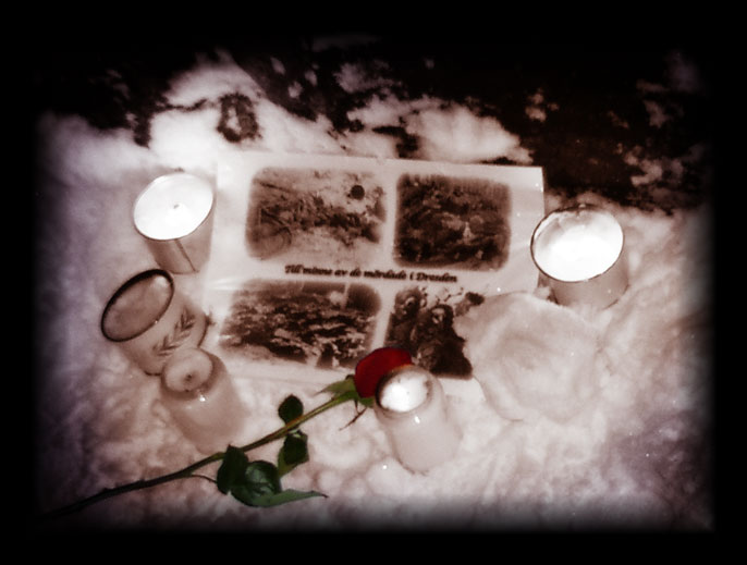 krigsslutet och under åren efteråt. Två gånger om året samlas människor som vill hedra de döda, vårda deras minne och levandegöra det förflutnas betydelse för framtiden. Två gånger om året lyser facklorna upp vintermörkret kring minneslunden på Skogskyrkogården i södra Stockholm. För att kunna hålla dessa stämningsfulla ceremonier med tal och blomsternedläggning bildades Dresdenkommittén. Det är här dess hemsida där tidigare ceremonier visas i bild och i förekommande fall också med ljud.
