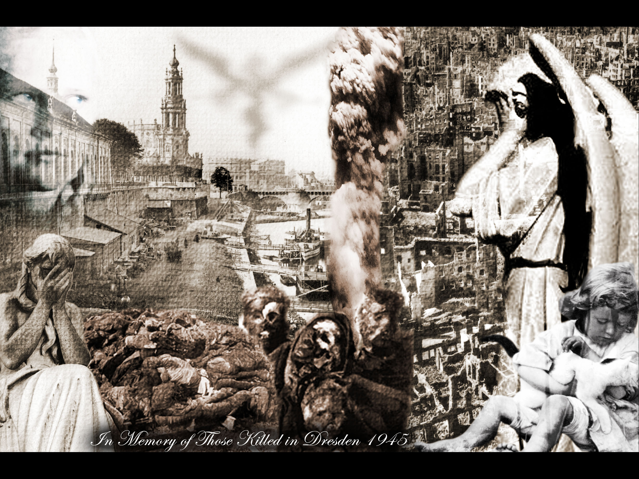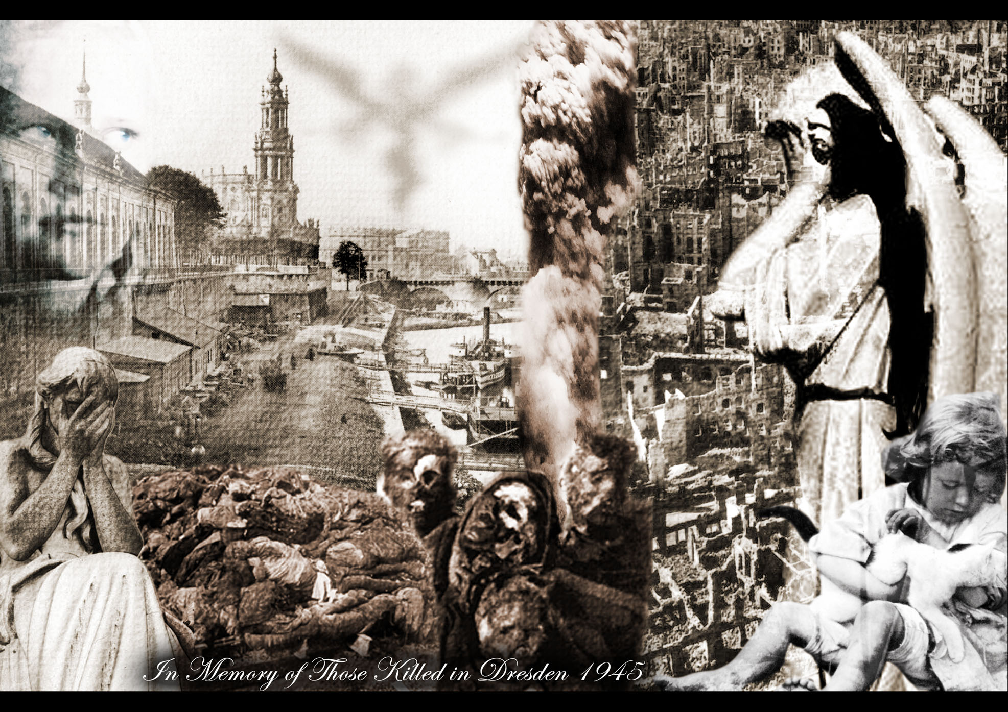 "To the devastation of Germany, from Dresden on, we remember and mourn." Kontaktadress: ---